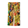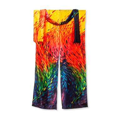 Silky finish with swirling daubs of colors from black through deep blue, green, red, orange, and brilliant yellow. |